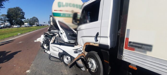 A colisão ocorreu por volta das 13h, no km 605 da rodovia, e foi do tipo engavetamento. Segundo informações apuradas no local, o utilitário seguia atrás de um caminhão, quando outro caminhão, que vinha logo atrás, não conseguiu frear a tempo e colidiu violentamente contra o automóvel, que acabou sendo prensado entre os dois veículos de carga.
