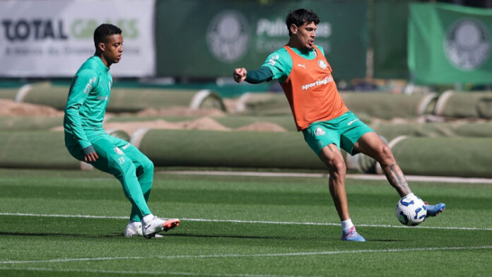 O Palmeiras finalizou nesta terça-feira (15), na Academia de Futebol, os preparativos para encarar o Mirassol, em partida válida pela 14ª rodada do Campeonato Brasileiro. Com foco na construção ofensiva, o técnico Abel Ferreira e sua comissão comandaram um trabalho voltado para movimentações na entrada da área, infiltrações em profundidade, cruzamentos e finalizações. A atividade terminou com um recreativo entre os jogadores, prática comum em vésperas de jogos. Do departamento médico, o lateral-direito Giay realizou atividades leves no gramado, enquanto o zagueiro Murilo deu sequência ao tratamento da lesão que o tirou do futebol brasileiro. Após o treinamento, o capitão Gustavo Gómez concedeu entrevista e tratou de dois temas que mexem com o ambiente alviverde: a chegada do atacante paraguaio Ramón Sosa e a sequência da temporada.