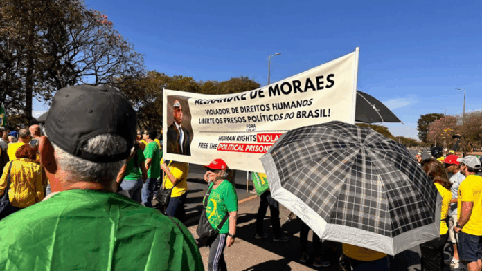 Apoiadores de Jair Bolsonaro vão às ruas de Brasília neste domingo (20), para uma caminhada em defesa do ex-presidente Jair Bolsonaro (PL). Na última sexta-feira (18), ele passou a usar tornozeleira eletrônica e foi submetido a outras medidas restritivas. O ato, chamado “Caminhada pela Liberdade”, foi convocado por parlamentares como a deputada federal Bia Kicis (PL-DF) e a senadora Damares Alves (Republicanos-DF). Segundo comunicado divulgado nas redes sociais das duas, a concentração foi às 9h no Eixão Sul, em frente ao Banco Central, e os manifestantes foram orientados a vestir verde e amarelo.