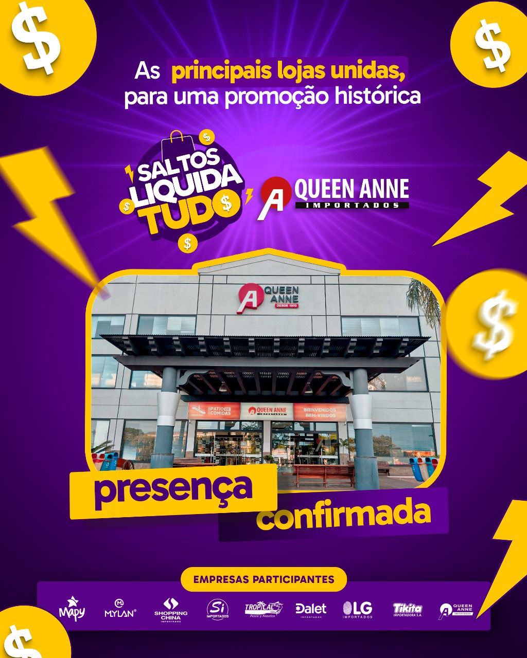 Com mais de 50 anos de história, o Queen Anne é referência em moda, beleza, cosméticos, eletrônicos e variedades, sendo um dos shoppings mais conhecidos e respeitados de Salto del Guairá. Sua presença fortalece ainda mais o evento e é garantia de qualidade, bons preços e credibilidade.