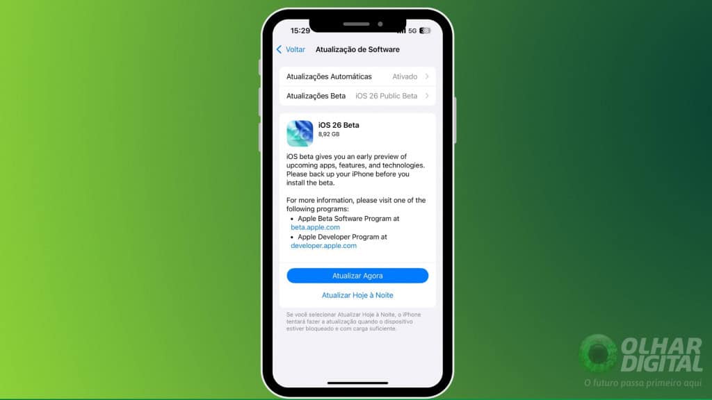 iOS 26 entrou em beta público e está disponível para quem quiser testar (Imagem: Ana Figueiredo / Olhar Digital)