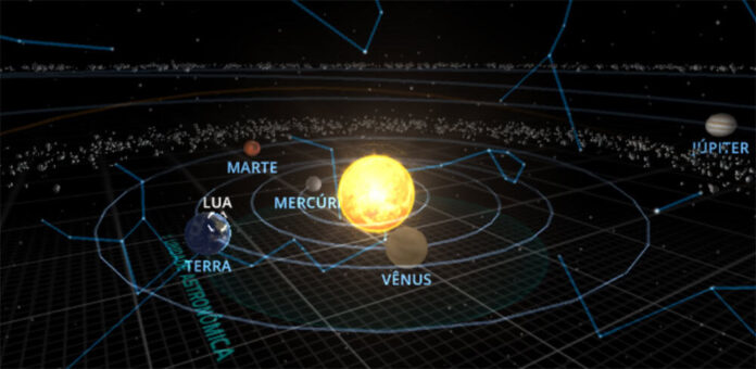 Se você quiser detalhes mais precisos sobre a observação, a Lua estará com magnitude -10,6, na constelação de Leão, enquanto Marte terá magnitude 1,6, em Virgem. Quanto mais brilhante um objeto parece, menor é sua magnitude (relação inversa). O Sol, por exemplo, que é o corpo mais luminoso do céu, tem magnitude aparente de -27.