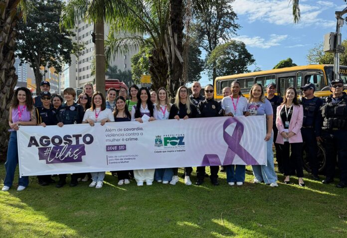 A Prefeitura de Foz do Iguaçu realizou nesta quinta-feira (7) uma blitz educativa em alusão aos 19 anos da Lei Maria da Penha, marco legal no enfrentamento à violência doméstica e familiar contra a mulher. A ação integra a programação do Agosto Lilás e mobilizou diversas instituições que compõem a rede de apoio às mulheres em situação de violência no município.