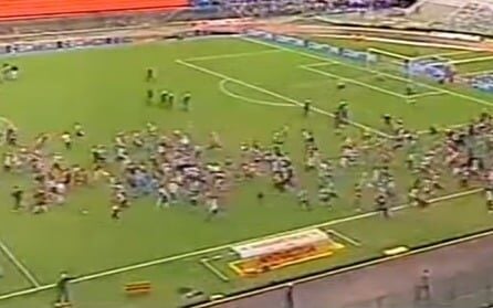A violência tomou proporções incontroláveis. Torcedores que caíam no chão eram espancados sem piedade. O gramado virou campo de batalha, com correria, pedras voando, barras de ferro e madeiras sendo usadas como armas improvisadas.