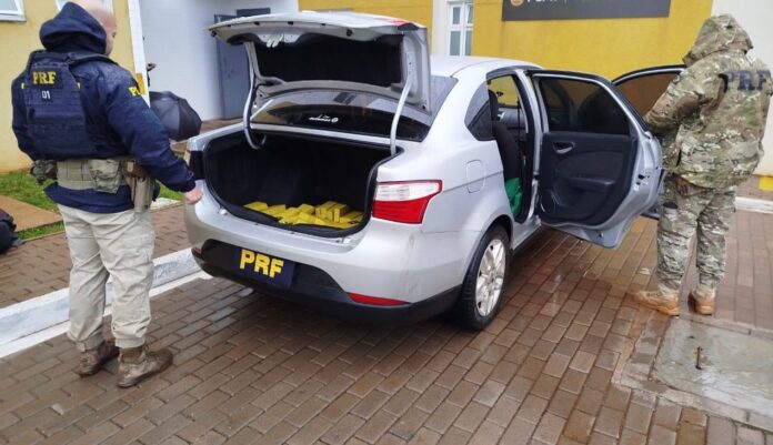 A Polícia Rodoviária Federal apreendeu, na manhã de hoje (24), 199,4 kg de maconha transportados em um veículo Fiat Siena.