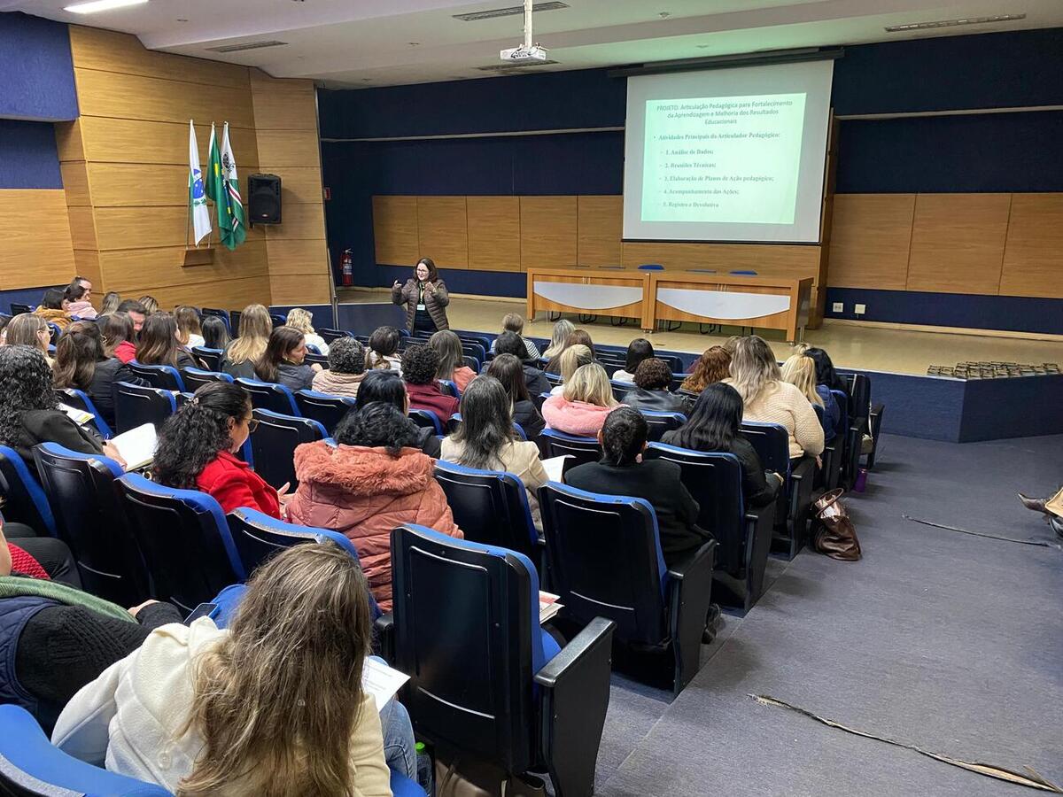 O Auditório Acary Oliveira recebeu, na manhã desta terça-feira (26), uma reunião da Secretaria da Educação (Smed) com os diretores e coordenadores pedagógicos das escolas municipais de Toledo. O encontro teve o objetivo de alinhar questões para o segundo semestre e também apresentar o projeto de articulação pedagógica para fortalecimento da aprendizagem e melhoria dos resultados educacionais.