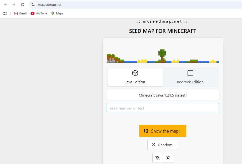Captura de tela do site mcseedmap.net – Imagem: Matheus Chaves/ Olhar Digital