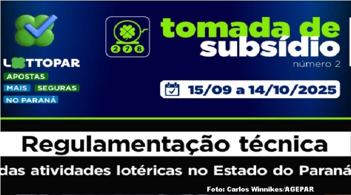 A Agência Reguladora de Serviços Públicos Delegados do Paraná (Agepar) lançou nesta segunda-feira (15) uma tomada de subsídios para receber contribuições da sociedade civil sobre a regulação complementar dos serviços lotéricos sob titularidade do Estado do Paraná, outorgados à Lottopar. As manifestações irão auxiliar a agência na elaboração da normativa, que deve contemplar critérios técnicos, econômicos, jurídicos e de fiscalização aplicáveis às modalidades de apostas de quota fixa, prognósticos, passiva, instantânea e jogos on-line.