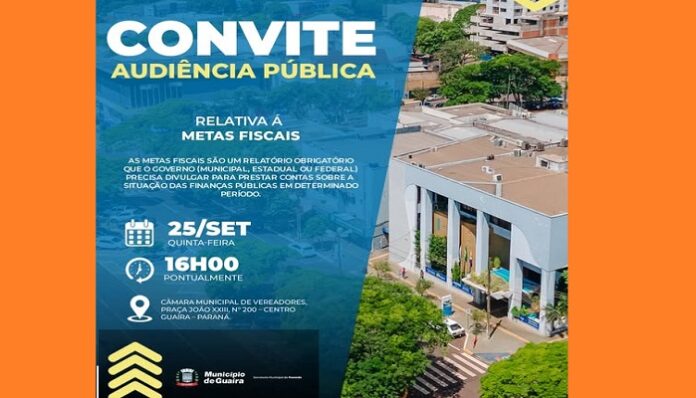 O Município de Guaíra convida a população e as entidades interessadas a participar da Audiência Pública sobre as Metas Fiscais.