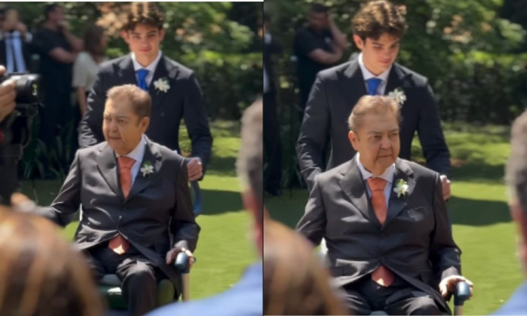 De cadeira de rodas, o apresentador Faustão levou, neste sábado (20), a filha Lara ao altar durante o casamento com Julinho Casares. A celebração aconteceu na casa de Faustão e foi compartilhada nas redes sociais pelo filho João Silva. Na foto, o apresentador aparece segurando a mão da filha e sendo empurrado por seu filho mais novo, Rodrigo Silva, que ajudou a levar a cadeira. Há cerca de um mês, o apresentador deixou a UTI após o processo de recuperação de um transplante de fígado e um retransplante renal, o qual ficou internado por três meses e passou por dois transplantes em 24 horas, sendo uma deles de fígado e o outro um retransplante renal. Esses foram apenas dois dos quatro procedimentos que ele passou nos últimos anos. Sendo um em fevereiro de 2024, transplante de rim, e outro em agosto de 2023, transplante de coração.