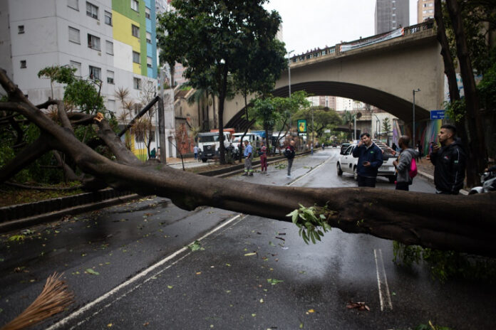No interior, houve registros de quedas de árvores e destelhamentos em cidades como Dracena, Marabá Paulista, Ourinhos e Sagres. Na capital, os ventos chegaram a 98 km/h no Campo de Marte e a 87 km/h no aeroporto de Congonhas, que registrou goteiras e precisou desviar e cancelar voos. Parte do teto da Estação Brás, ponto de integração entre Metrô e CPTM, também desabou. O Corpo de Bombeiros contabilizou 284 chamados para quedas de árvores, além de ocorrências de enchentes e desmoronamentos. Na Avenida Nove de Julho, uma árvore interditou a via e outras atingiram veículos estacionados na região central.