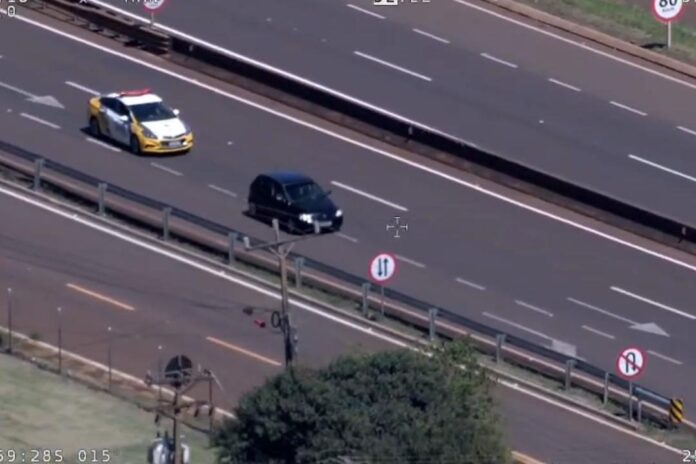Um veículo transportando dez celulares contrabandeados foi perseguido pelo helicóptero Falcão 13 da Polícia Militar do Paraná (PMPR) na última quarta-feira (24), em Cascavel, região Oeste do estado. A ação contou com apoio aéreo do Batalhão de Polícia Militar de Operações Aéreas (BPMOA), que acionou uma equipe terrestre do 6º Batalhão da PM para realizar a abordagem na BR-277. O carro e a carga foram apreendidos e encaminhados à Receita Federal.