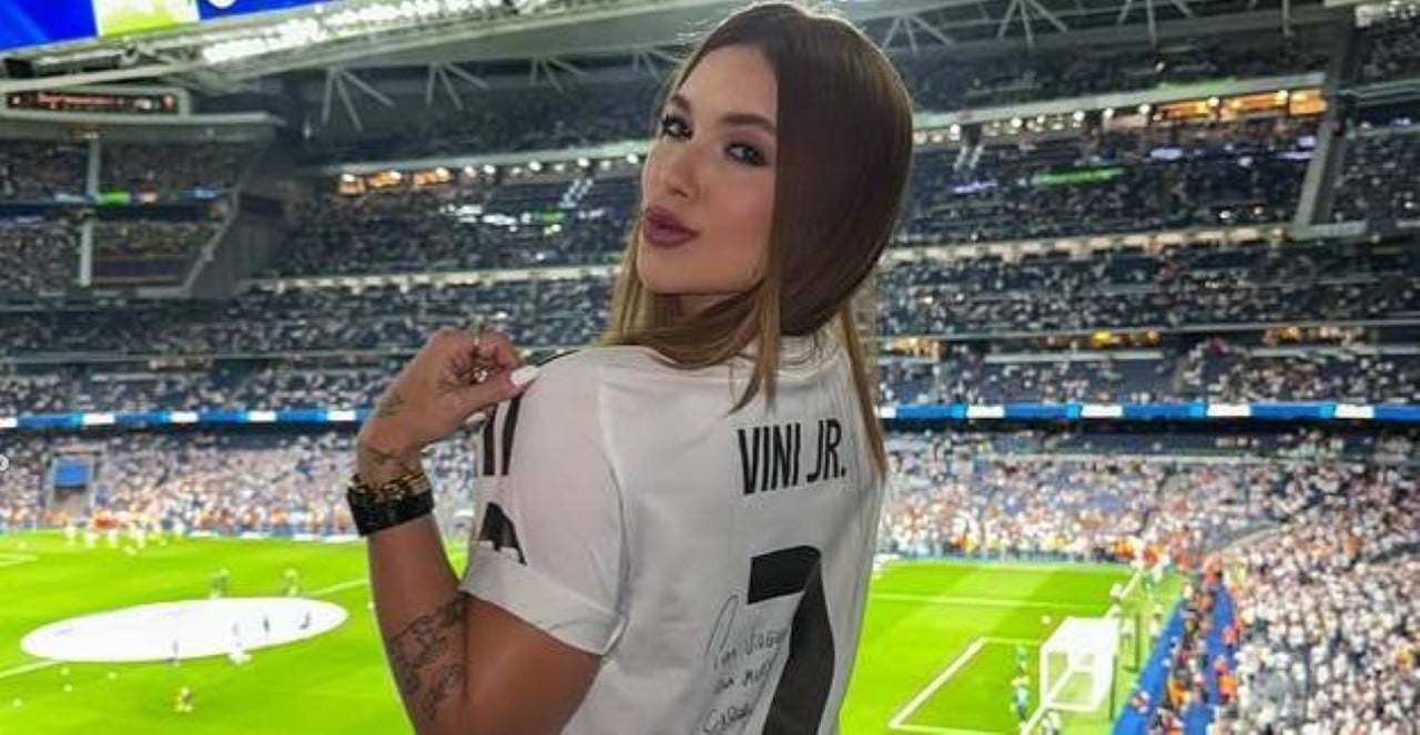 Virginia Fonseca acompanha vitória do Real Madrid no Bernabéu com camisa presenteada por Vinicius Júnior
