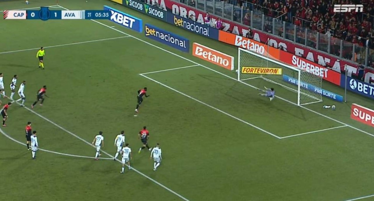 - 5’ 2T: Viveros converte pênalti e empata para o Athletico.