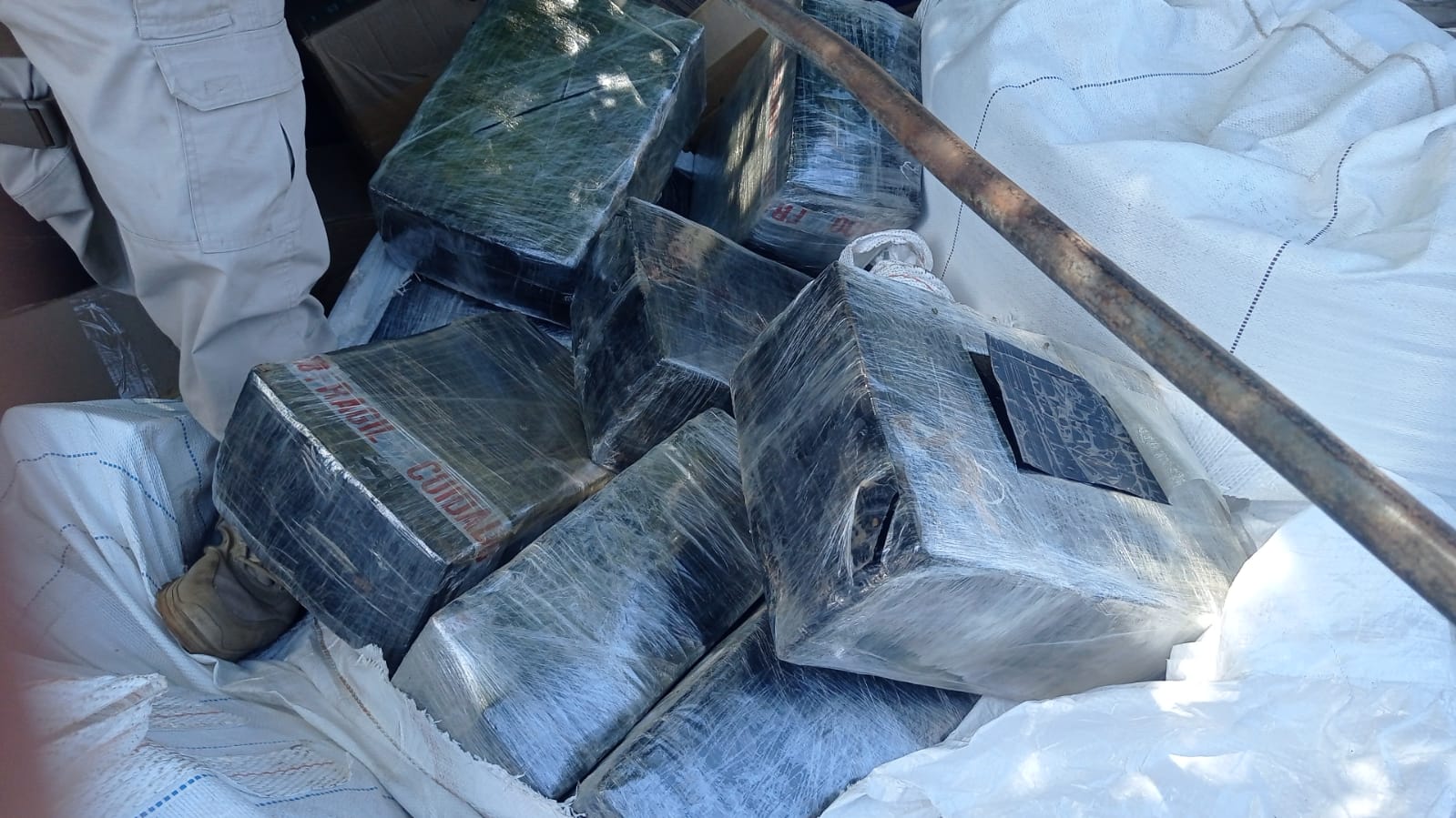 Durante a fiscalização do veículo, os policiais localizaram, escondidos entre a carga, diversos tabletes de maconha, além de aparelhos celulares e garrafas de vinho de origem estrangeira.