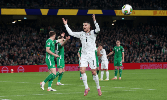 O atacante português Cristiano Ronaldo corre sério risco de ser suspenso e perder até dois jogos na fase inicial da Copa do Mundo de 2026, caso Portugal se classifique para o torneio de seleções. O astro do futebol foi expulso por dar uma cotovelada no zagueiro irlandês Dara O’Shea no segundo tempo da partida das eliminatórias da Europa nesta quinta-feira (13), em partida que os portugueses perderam por 2 a 0, em Dublin.