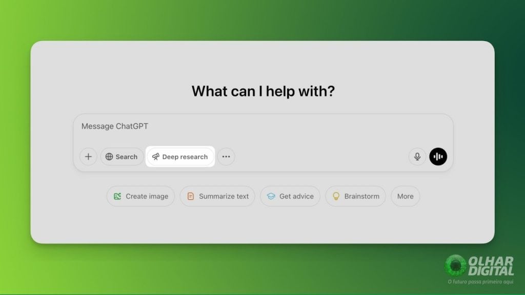 Função Deep Research no ChatGPT (Imagem: Reprodução/OpenAI)