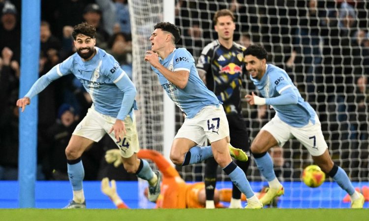 Com dois gols, Phil Foden garantiu a vitória por 3 a 2 do Manchester City sobre o Leeds United neste sábado (29), pela 13ª rodada da Premier League. O resultado manteve os Citizens a quatro pontos do líder Arsenal. Jogando em casa, o City abriu 2 a 0 ainda no primeiro tempo, com Foden aos 1 minuto e Josko Gvardiol aos 25. No segundo tempo, porém, o Leeds reagiu e empatou com Dominic Calvert-Lewin, aos 4, e Lukas Nmecha, aos 23. A vitória só veio nos acréscimos, quando Foden acertou um chute rasteiro no canto esquerdo e definiu o placar.