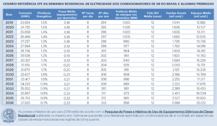 Esse fato é ainda mais relevante no cenário nacional: estimativas da Empresa de Pesquisa Energética projetam, até 2036, aumento de 40% no número de aparelhos instalados no país e crescimento de 31% no consumo total de energia.