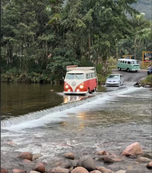 À primeira vista, o local parece apenas uma estrada de chão comum, sem pavimentação. No entanto, ao se aproximar, surge a ponte, que não passa sobre o rio, mas fica parcialmente submersa, permitindo que a água corra por cima da estrutura. O resultado é a sensação curiosa de caminhar ou dirigir literalmente dentro do rio.