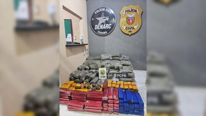 A Polícia Civil do Paraná (PCPR), por meio da Divisão Estadual de Narcóticos (DENARC), núcleo de Foz do Iguaçu, em operação conjunta com a Polícia Militar realizou a apreensão de aproximadamente 291 quilos de drogas, entre maconha, capulho e haxixe, na madrugada deste domingo (21). A ação resultou na prisão de três pessoas e na apreensão de dois veículos utilizados na logística do tráfico.