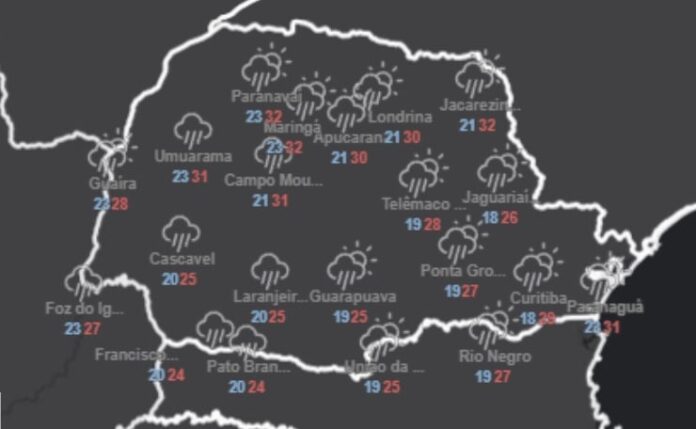 Previsão do tempo para sábado no Paraná (Crédito: Reprodução/Simepar.br)