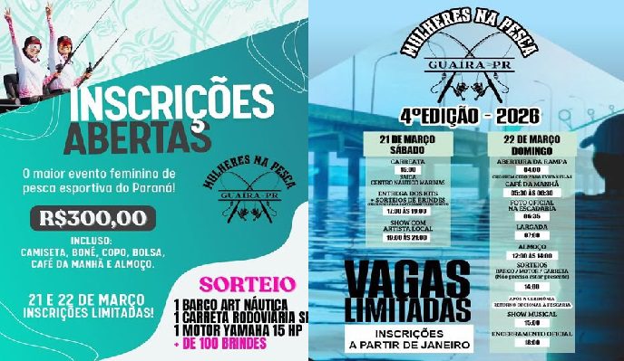 O Município de Guaíra recebe, mais uma vez, um dos eventos mais aguardados do calendário do turismo esportivo regional: o Mulheres na Pesca, encontro de pesca esportiva exclusivo para o público feminino, que chega à 4ª edição com crescimento expressivo de participantes e reconhecimento regional.