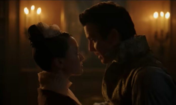 Se na primeira parte havia expectativa e flerte, na segunda o romance ganha peso dramático. As declarações são menos fantasiosas e mais urgentes. A química do casal principal, construída com aquele slow burn clássico da série, finalmente explode. Mas, diferente de temporadas anteriores, aqui o amor não é apenas arrebatador: ele é político, estratégico e, em alguns momentos, quase perigoso.